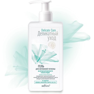 Гель разработан специально для ежедневной гигиены женщин во время беременности и после родов, а также для женщин с чувствительной кожей. Гель не содержит отдушек, красителей, спирта, SLES и SLS, благодаря чему является необыкновенно мягким и ультраделикатным. Комплекс активных компонентов, входящий в состав геля, нежно очищает и освежает кожу, сохраняет естественную микрофлору интимной зоны, обладает антибактериальными свойствами.