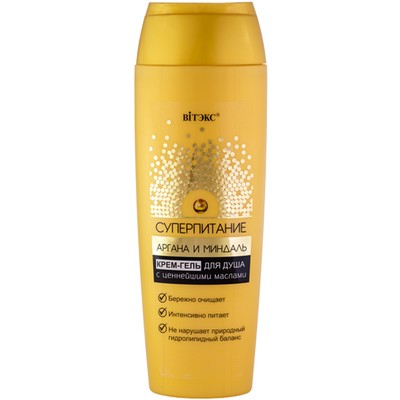 Крем-гель-душ благодаря своей мягкой формуле бережно очищает кожу, исключая ее пересушивание во время мытья. Питательные вещества и протеины в натуральных маслах арганы и сладкого миндаля восстанавливают гидролипидный слой кожи, смягчают, обеспечивают упругость и эластичность кожи, стимулируют регенерацию клеток.