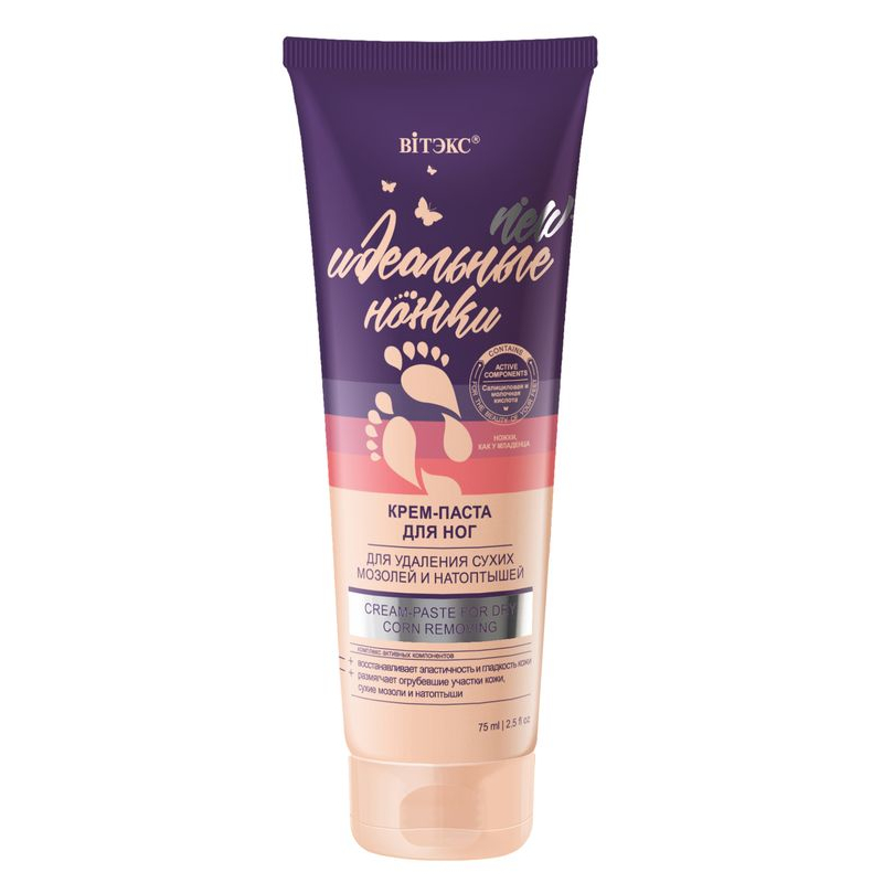 Применение: нанесите крем-пасту локально на огрубевшие участки кожи и оберните ступни пленкой. Выдержите 20 – 30 мин. Смойте теплой водой.