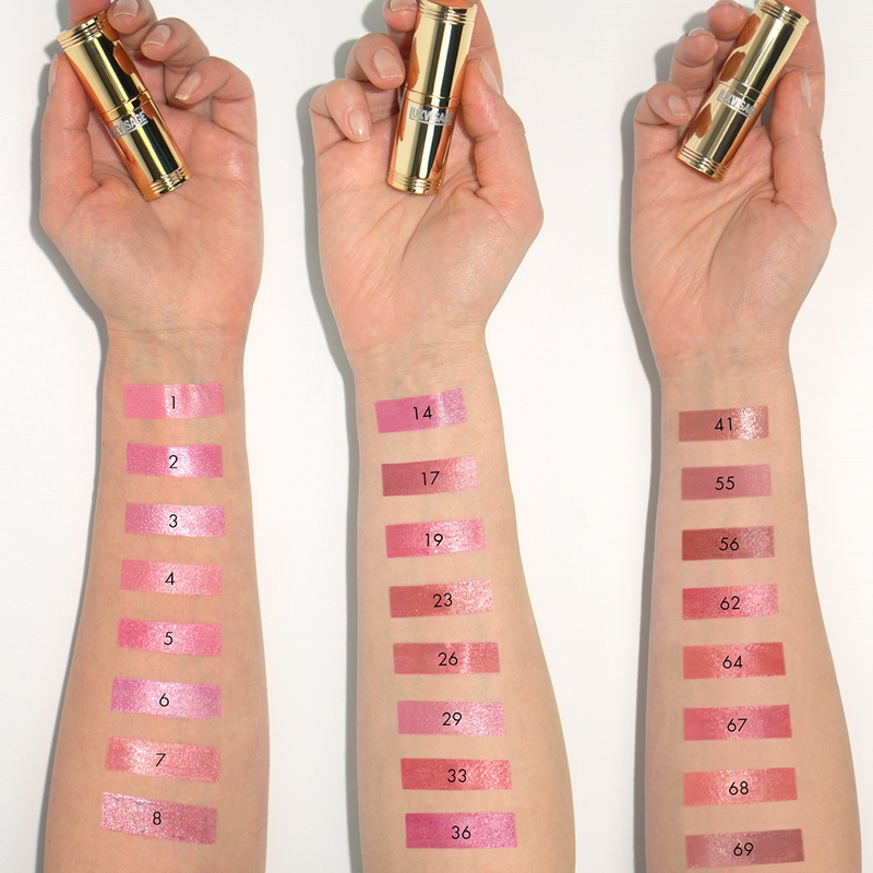 Жемчужные перламутры, разнообразные мерцающие шиммеры и глиттеры в составе помады создают изумительный эффект объемных губ и придают им ослепительное сияние.