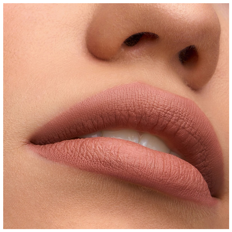 Высоко пигментированная формула обеспечивает 100% передачу цвета, полностью перекрывает естественный цвет губ при нанесении в один тонкий слой.