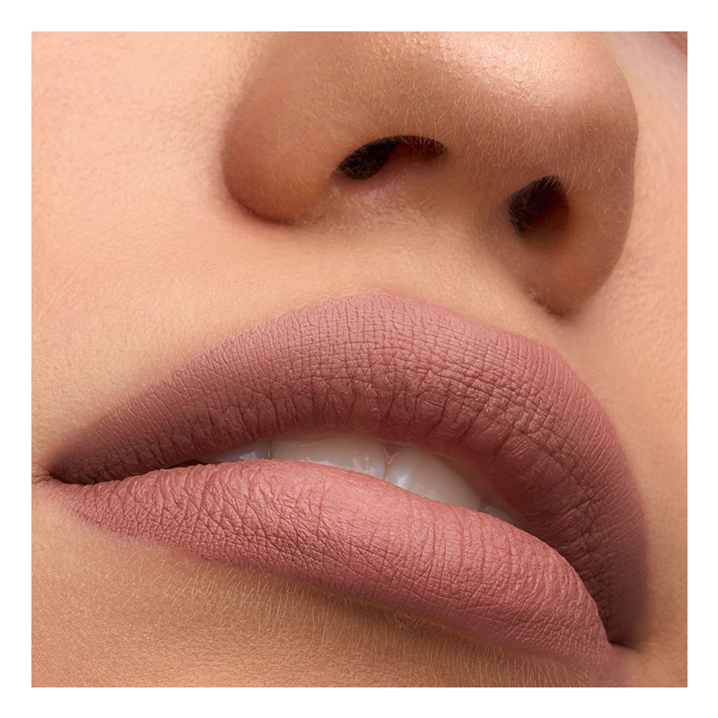 Жидкая флюидная текстура помады быстро высыхает после нанесения и создает невесомое покрытие с ультра матовым финишем.