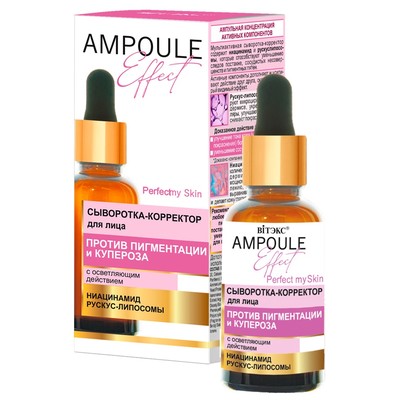 Активные компоненты дополняют и усиливают действие друг друга, оказывая быстрый видимый эффект: максимально осветляют кожу, сокращают интенсивность пигментных пятен, блокируют их повторное появление, укрепляют капилляры, помогают устранить проявления купероза, придают коже сияние.