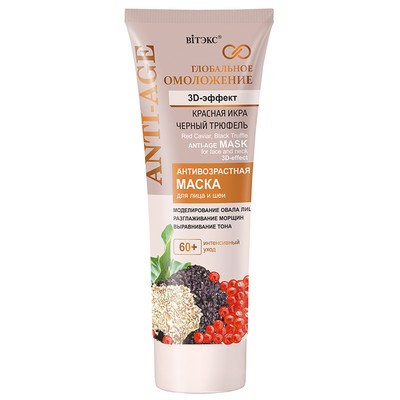 Активные компоненты (черный трюфель, красная икра, гиалуроновая кислота, витамины А и Е, инновационные антивозрастные комплексы) помогают день за днем бороться с существующими признаками старения кожи и противостоять появлению новых, обеспечивая 3D-эффект омоложения кожи лица и шеи: