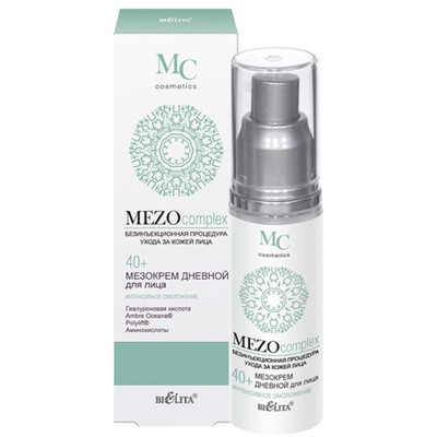 Дневной мезокрем эффективно разглаживает морщины, увеличивает упругость и эластичность кожи, обеспечивает лифтинг-эффект, глубоко увлажняет кожу и восстанавливает оптимальный уровень увлажненности, активизирует клеточное обновление, улучшает цвет лица, делает кожу более гладкой и сияющей.