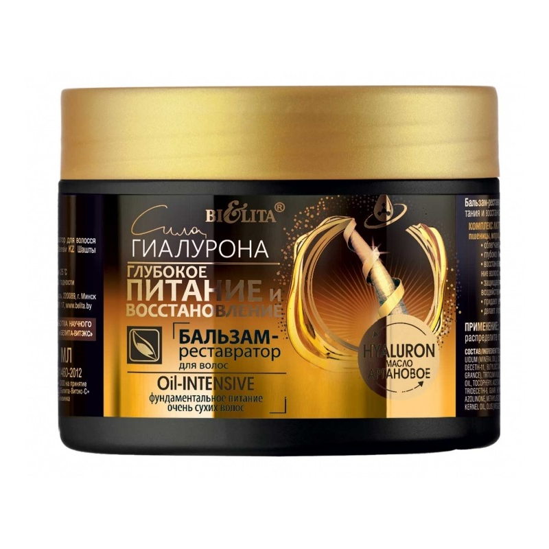 вода, цетеариловый спирт, хлорид цетримония, масло вазелиновое, масло Cocos Nucifera (кокоса), бегениловый спирт, силикон кватерниум-16, ундецет-11, бутилоктанол, ундецет-5, поликватерниум-11, воск пчелиный синтетический, поликватерниум-37, дикаприлат/дикапрат пропиленгликоля, ППГ-1 тридецет-6, изопропилмиристат, масло зародышей Triticum vulgare (пшеницы), токоферилацетат, БГТ, пшеничный белок, парфюмерная композиция, хлорид гуаргидроксипропилтримония, бензиловый спирт, метилхлоризотиазолинон, метилизотиазолинон, метилпарабен, кислота лимонная, пропилпарабен, масло косточек Argania Spinosa, растительное масло, гиалуронат натрия, бутилфенилметилпропиональ, линалол
