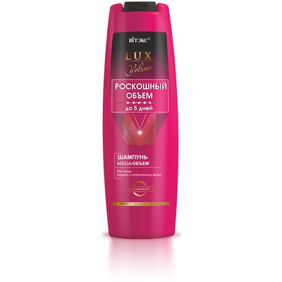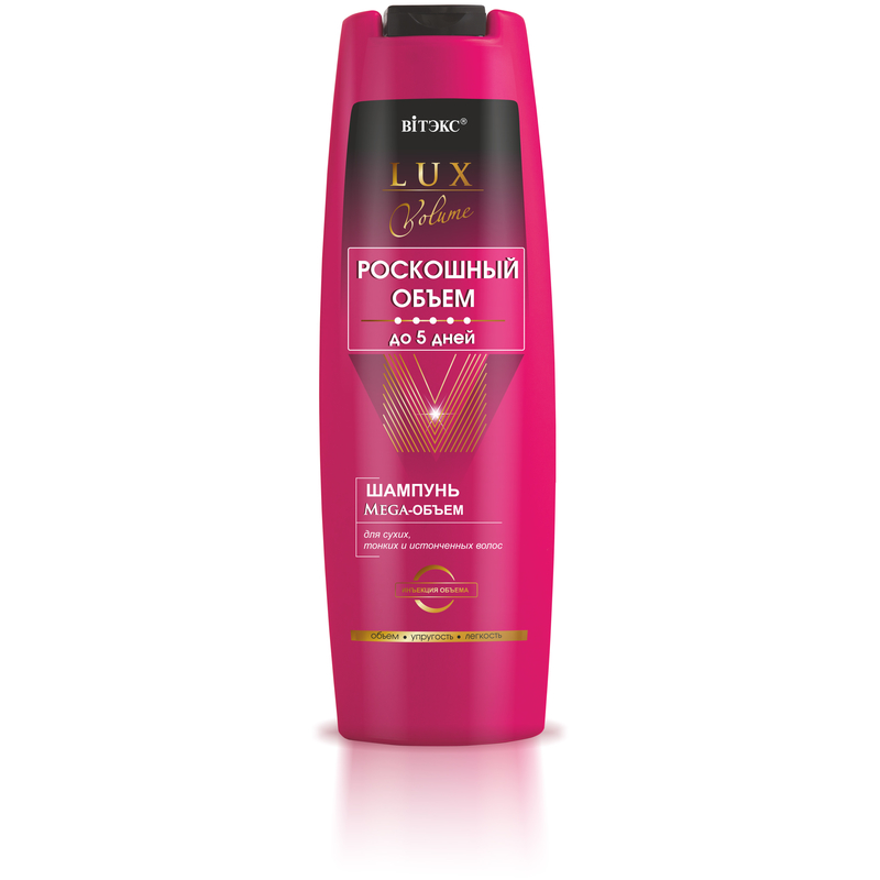 Шампунь Mega-ОБЪЕМ создан специально для ухода за сухими, тонкими и истонченными волосами, он начинает уплотнять волосы изнутри, укреплять их структуру и наполнять объемом по всей длине уже на этапе очищения.